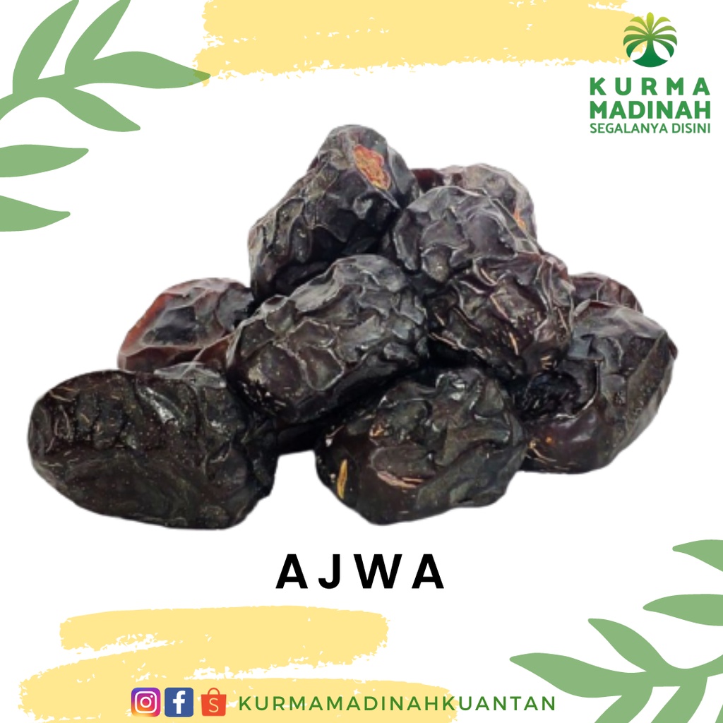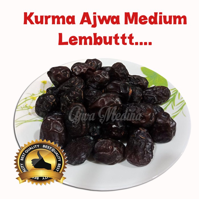 Kurma Ajwa VIP large Kurma Ajwa Jumbo Kurma Ajwa Medium AA. Sedap sangat dan kurma ajwa ni sangat popular kerana harganya yang mahal walaupun harga sedikit mahal tapi memang berbaloi dengan kualiti dan rasa kurma tersebut. Manakala untuk pembelian secara borong ada 2 saizjenis Kurma iaitu VIP 5Kg RM300 dan LARGE 5Kg RM250.